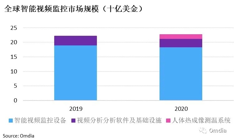 。该排名依照厂商自有品牌出售额对不同产品类别进行计算,规模包含智能视频监控设备(包含专业级监控摄像机、视频录像机、视频剖析设备、视频监控软件以及相关附件,不包含车载和家用视频监控设备)和智能视频监控相关基础设施(包含独立视频剖析软件、服务器、超交融设备以及外部存储,另添加人体热成像测温体系)。2020年全球智能视频监控商场遭到新冠疫情的负面影响,添加大幅放缓。据Omdia估量,2020年全球智能视频监控设备及相关基础设施商场规模为226.5亿美金,相较2019年仅添加2.2%。另一方面,智能视频监控设备商场规模估量为183.8亿美金,同比下降3.4%。值得重视的是,因为商场对疫情防备产品的需求激增,带动了人体热成像测温体系的热销,这关于整个商场规模起到了必定的拉升效果。