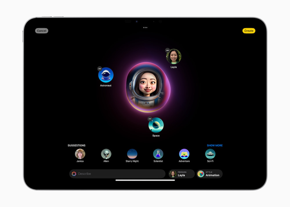 Apple Intelligence 为用户供给兴趣无量的图画发明功用,帮忙用户用全新方法进行交流和表达自我。借助于 Image Playground,用户可在数秒间发明出风趣的图画,且有动画、插画、手绘三种款式能够挑选。Image Playground 运用简略,而且直接内置在信息等多款 app 中。它也可作为一款独自的 app 进行装置和运用,十分合适实验不同的构思和风格。一切图画均在设备端创立生成,让用户能够不受图画数量约束,纵情测验。