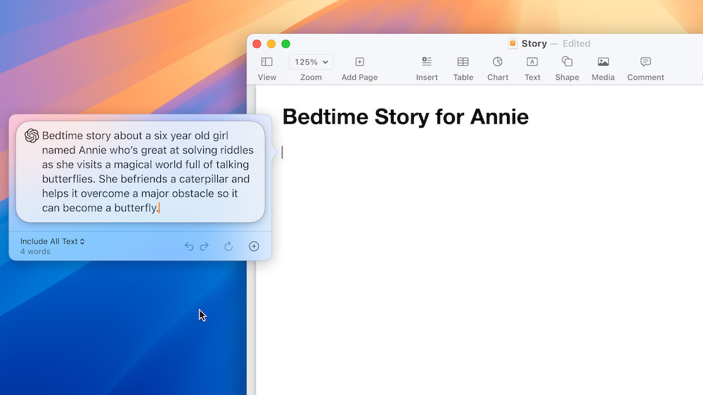 不仅如此,ChatGPT 也将被集成至 Apple 供给的能够全体系调用的 Writing Tools 东西内,帮忙用户依据其时主题生成内容。运用 Compose 功用时,用户还可运用 ChatGPT 的图画东西生成多种多样的图画,做到图文并茂。